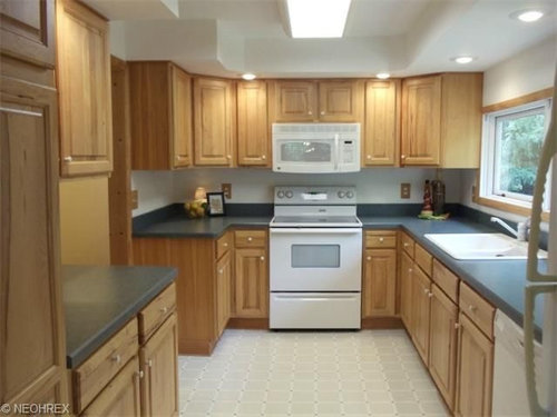 See how you can update a kitchen with new countertops, light fixtures, paint and hardware
