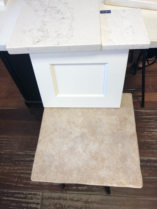 Contrast or complement textures, tones and more by using a mix of materials for countertops and island tops