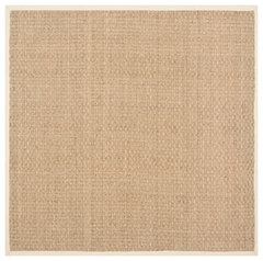 A modern blue, gray and orange rug is at the center of a redesign that embraces the homeowners’ art collection