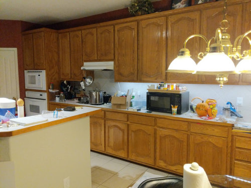 Help?! How to get Honey Oak to match new cabinets??