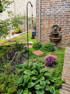 I crave a bit of running water and a few elements of garden art. I love my Cosanti bell and the little fountain.