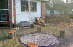 Lynn your landscaping is exquisite. I may check back with you when I get to the point where I am landscaping around the fire pit. I sort of envision stone pavers or fake concrete ones . . . right now it is ratty grass, weeds and moss and sandy soil. Does not need to be mowed because it barely grows due to the bad soil, but it looks tatty. I need something that if a spare fire spark lands on it it won't smolder, so wood chips are out . . .Here it is last year. We put our small metal fire pit bowl on it when we have a fire but don't leave it out. It functions as a dry well when it rains . . .