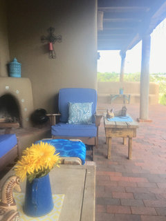 Absolute Essential was our kiva fireplace, because here in the mountains of Northern New Mexico at 6,000+ feet our evenings are almost always chilly to downright cold. But, the view from there is gorgeous. So I insisted on a fireplace area we could use all year. 28 years here and I am so glad I insisted!