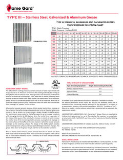 As an example, here is a page from FlameGard for a similar baffle filter type. If one scales air flow for the Wolf baffle area to a FlameGard baffle area, one can then read the pressure loss for this similar baffle design. (Click to expand.)