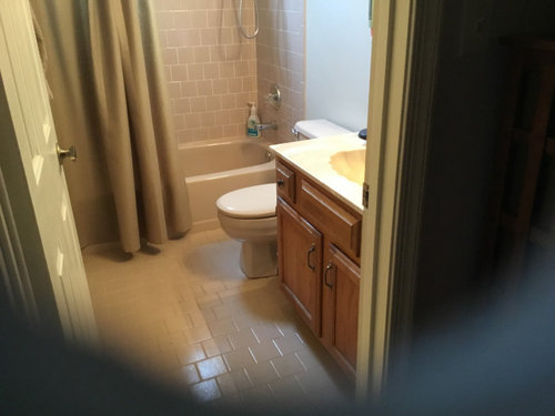 Bathroom vanity replacement dilemma in fawn beige bathroom