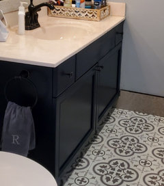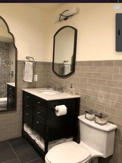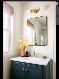 BATHROOM MAKEOVERSBathroom of the Week: Breezy and Open With a Navy Blue Vanity