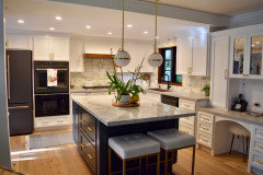 Two islands and refrigerators create separate areas according to function in this kitchen remodel