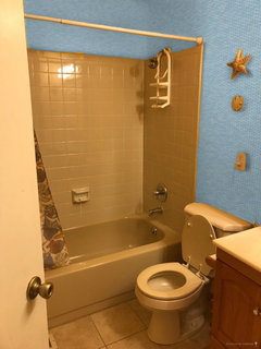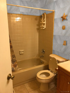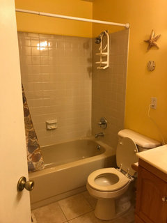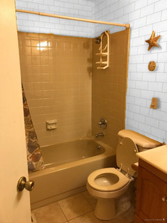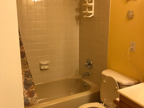 Help me renovate my bathroom with a brown/beige tub on a budget