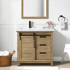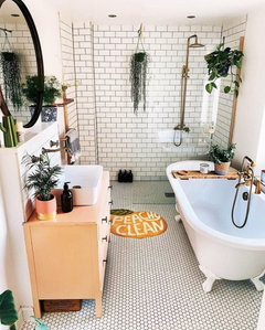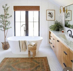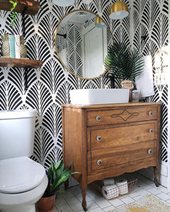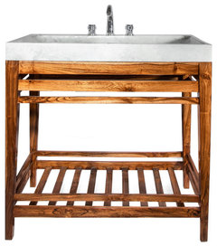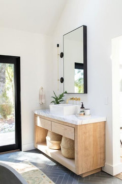 Please help me find a wood vanity for this vintage/boho/spa bathroom!