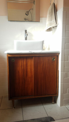 Turn an old table, desk or dresser into a bathroom vanity with a character all its own