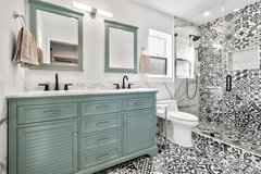 BATHROOM MAKEOVERSBathroom of the Week: Curbless Shower and an Aqua Vanity
