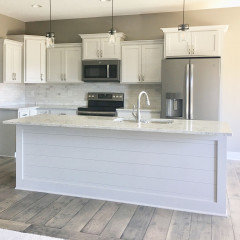 WHITE KITCHENSReclaimed Siding and Red Accents Personalize a White Kitchen