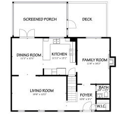 Here’s the empty layout. Written measurements include window and door trim even though the drawing itself does not. I forgot to label it, but the cased opening on the right-hand wall above the pantry leads to the family room.
