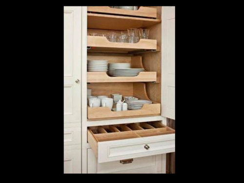 I also want to explain what the dishes storage on the right would look like. I have attached a picture of something similar to what I am thinking. I would also like to try to incorporate the built-in paper towels thing (picture attached) under the flatware drawer.