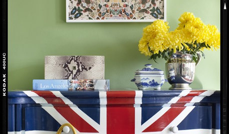 British Flag Adds a Graphic Punch via Pillows, Paintings, Rugs and Furniture