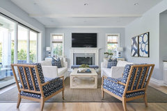 The right colors and right-sized furniture and accessories open up entertainment possibilities in a California Craftsman