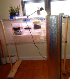 I do the reflective thing too, Moni. Only mine isn't as tidy as yours. lol. It's also useful in keeping kitties (who want to play in the seedlings) from getting onto the light shelf.