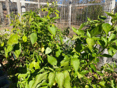 My HUGE pineapple sage died/froze night before last. I had continually pulled the red flowers off, cause I love them in my salads. Thus, I can have some in at least two more salads.I had my swiss chard covered... and will harvest the last re-grown parts before the next possible frost. This has been a very good crop, and I will plant that again.