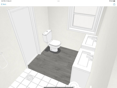 See a before-and-after reveal of a master bath with lighting and flooring designed for an older couple