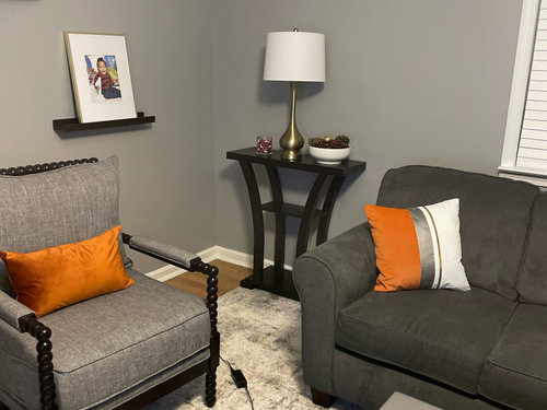 Color, Placement and Accessories Help that Big Black Screen Blend In