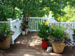Create an alluring after-dark aura on a patio or deck with container plants that glow white under the stars
