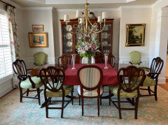 Bold reds and unexpected furniture pairings give a Hillsborough dining room an energetic edge