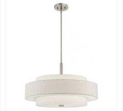 Since you plan to always have a table in the space, I would put a pendant light over the table. With a vintage table in a new kitchen, there is an opportunity to pull the two styles together with a light fixture that is inspired by the mid-century aesthetic but is new so it doesn’t look dated. A light with a drum shade came to mind so I searched the Home Depot website for ‘drum pendant light’ and I think there were over 1,000 results but I put a few pics below. The photos that you posted are very helpful because I can see that the floor plan is staying mostly the same except that you are adding additional cabinets to the corner where the table used to be located. I would suggest adding blue painters tape to the floor to mark out the new cabinets. And maybe fill in the space with some boxes so that you can visualize the floor space (and air above it) that will be remaining for the table. Then try the table in different locations over several days, making sure that it’s still comfortable when everybody is seated and getting up/down from the table, etc, and that you can comfortable open the fridge, etc. After you know exactly where you want the table, you will know where the light should be located. You can even try one of the plug-in type pendant lights over the table to see how you feel about having a light there (see last pic also from Home Depot.). If you ever decide to eliminate the table, you can always change this pendant light to a recessed light since the wiring will be there. The only negative is that it will be on a separate switch, assuming that’s the plan. You could also consider a smaller matching pendant over the kitchen sink to further coordinate the vintage table with the new kitchen. Regarding the table repair, that looks like Formica, which is generally glued using contact cement. A coat is rolled onto each surface and then after it has dried to tacky (not stringy) the two surfaces are carefully pressed together, and then rolled with a j-roller (a rolling pin might make a good substitute in a pinch.). There is no need for clamps afterwards because the bond is extremely strong. Usually when new countertops are fabricated, the Formica is cut big and after it is adhered to the surface, it is trimmed with a router. It is tricky to re-glue something that is already cut to size but it can be done. I haven’t checked, but I have no doubt that there are YouTube videos showing how it’s done. You can probably look up videos for new countertop fabrication as well as videos showing repairs.