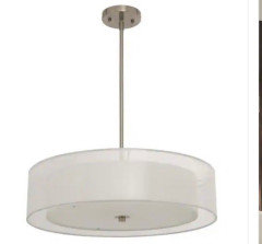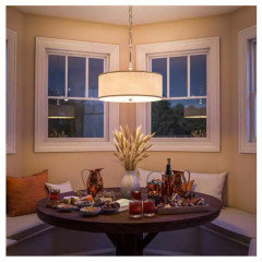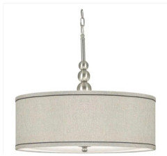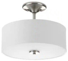 I strongly object to the idea of using a single recessed light to illuminate a dining table. Recessed lights are used for task lighting and although eating can be considered a “task,” we also do other things at the table such as talking to one another. If you think you want a recessed light over your kitchen table then I suggest that you find another recessed light someplace (even if in somebody else’s house,) and put a few kitchen chairs or a card table/chairs under it and sit down with a few people to see how everybody’s faces look. I think you will find that it’s very unflattering, especially when you turn up the dimmer. I personally have never seen a dining room where recessed lights are used exclusively, but I’m sure that somebody someplace has made that unfortunate decision because god forbid there is a light fixture visible to take away from the other design elements in the space. BUT, form follows function, not the other way around! If you don’t want something like a pendant light hanging down, then you can choose either a semi-flush mount fixture or a flush mount fixture. I like the semi-flush mount because it bounces light off the ceilings. Your ceilings are 8’ high so I think you could benefit from extra light on the ceiling, which you will not get from recessed lights since they point down. The one pictured is from Home Depot. I have similar looking lights but they have a glass shade and came with a removable metal cage, which I removed so I only have an unobtrusive frosted glass shade, which I think blends in with the white ceiling and doesn’t take away from the other elements of the room.
