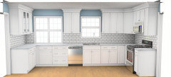 mcarroll16, I see what you’re saying about it not necessarily looking like a truly dedicated dining area, but there is not another table nearby because the dining room is currently being used as an office. KW said that they do use it to eat, otherwise they wouldn’t have had to move it from its intended location under the double windows which is only about 6’ wide (give or take) because in that location, with 5 people all using the table at the same time, some people couldn’t easily get up and down from the table and felt trapped. Also, the dining room is separated from the kitchen by a solid wall. And assuming that some of these 5 family members are children, I can see why they would use the kitchen table for meals even if they had a dining room table. KW also said that they always plan to have some sort of table there, so what is the harm in putting proper lighting above said table? Not only will it be functional, but it will help the location to look more like a proper dining area instead of an afterthought. As I said, it can always be converted to a recessed light in the future since the wiring will already be there. I’m all for planning for the future, but I also think they have to plan for how they will be using the kitchen right now and in the near future. P.S. If the dining room is behind the wall where the new cabinets are being added, as opposed to behind the range, then careful planning of the cabinets on that wall can allow for it to be opened up in the future. For instance, the cabinets can be planned so they can be relocated next to the refrigerator. Or, they can be planned to be used as a peninsula in the future. A wider doorway from the kitchen to the dining room would be helpful, so maybe some of the cabinets could be relocated while the remaining can become a small peninsula. This won’t work if the dining room is behind the range.