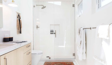 BATHROOM MAKEOVERSBefore and After: A New Tile Floor Unites a Divided Bath