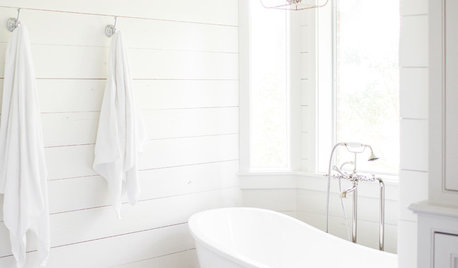 BATHROOM MAKEOVERSBathroom of the Week: Modern Farmhouse Style in White and Wood