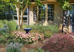 Were it strictly up to me, I'd like to remove both of them and, like you suggested, place something like a smaller Japanese maple near where the magnolia is (but a little farther out). It would be more size appropriate, and I'd have color for 3 seasons instead of a few weeks like I have now! But alas, it's not strictly up to me :-/