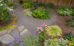 I have a pathway circling the tree to another garden in the side yard. I DID have several hostas following the path, but they were getting too much sun and burned long before they looked good.