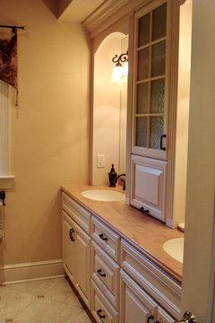 See how countertops, sinks and hamper storage join stylish tile and cabinets to create hardworking spaces worth being in