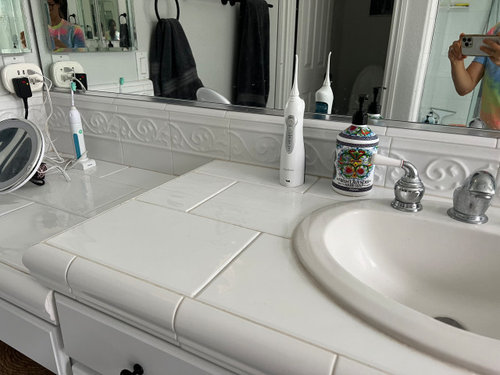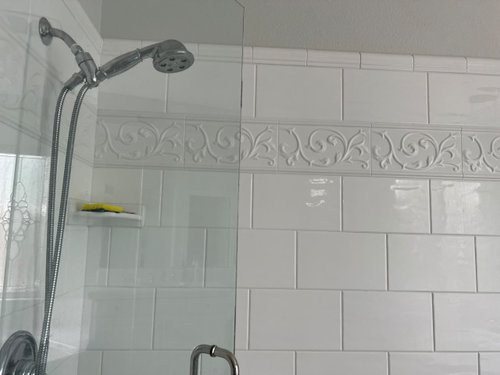 Creative ways to hide 1 row of textured tiles in bathroom?