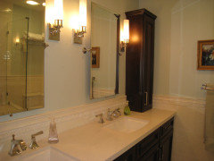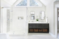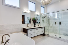 Your budget bathroom can have a high-end feel with the right tile, stone, vanity and accessories