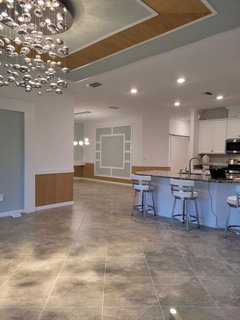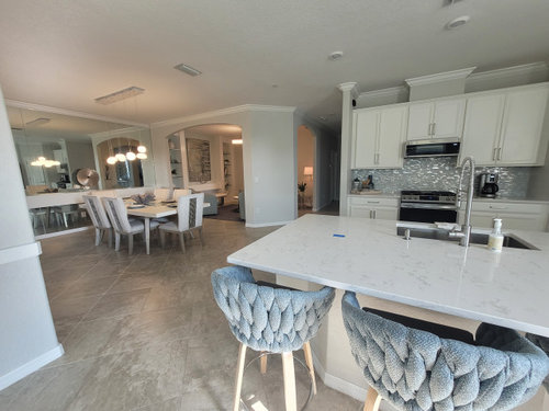 Sophistication meets durability and easy-to-clean surfaces in a dramatic style-mixing space