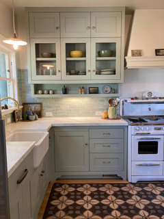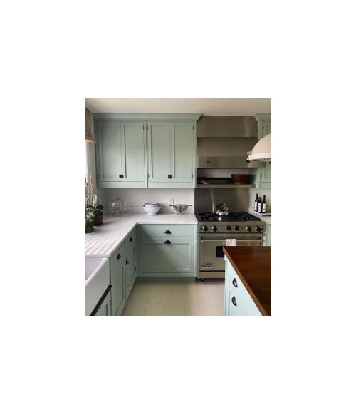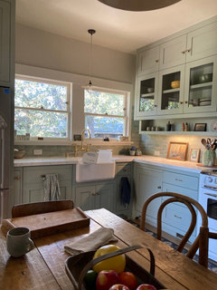 KITCHEN MAKEOVERSKitchen of the Week: Blue-Green Cabinets With Rustic Wood Details