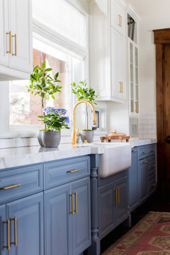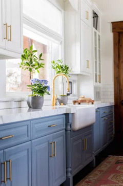 Blue and blue-gray wow in these kitchens, bringing in warmth, character and charm