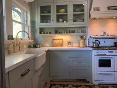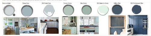 Kitchen cabinets: Pale blue gray, pale minty green, or dark blue?