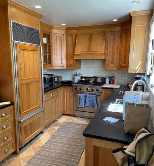 Designers found on Houzz help a couple create a better layout with a large island, more work surface and extra storage
