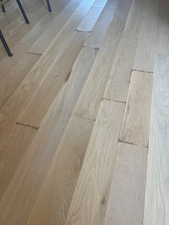 The gorgeous hardwood is warped. It’s buckling under the island.
