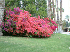 Drip irrigation placement for a row of bougainvillea