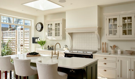 Handmade cabinetry and aged brass finishes are a good fit for an Edwardian house in London
