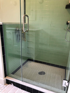 A designer and a builder loosen up a layout with a freestanding tub, bright palette and glass-enclosed low-curb shower