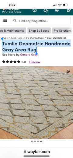 A modern blue, gray and orange rug is at the center of a redesign that embraces the homeowners’ art collection