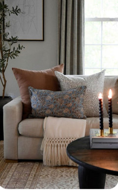 Pull together a personalized living room look with these ideas for combining colors, prints, textures and shapes