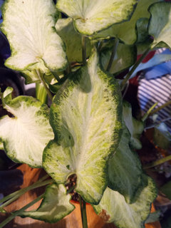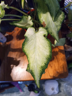 Got this plant a few days ago.I thought it was a syngonium, but, when trying to find out what variety it might be I also got pictures of Caladiums. None of the pictures look exactly like it...so I'm not sure.