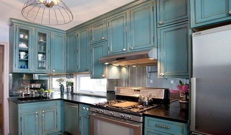 KITCHEN DESIGNKitchen of the Week: Turquoise Cabinets Snazz Up a Space-Savvy Eat-In