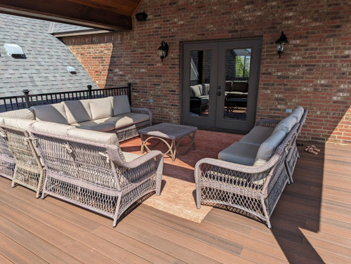 Bring indoor coziness to a patio or porch with area rugs designed for the outdoors